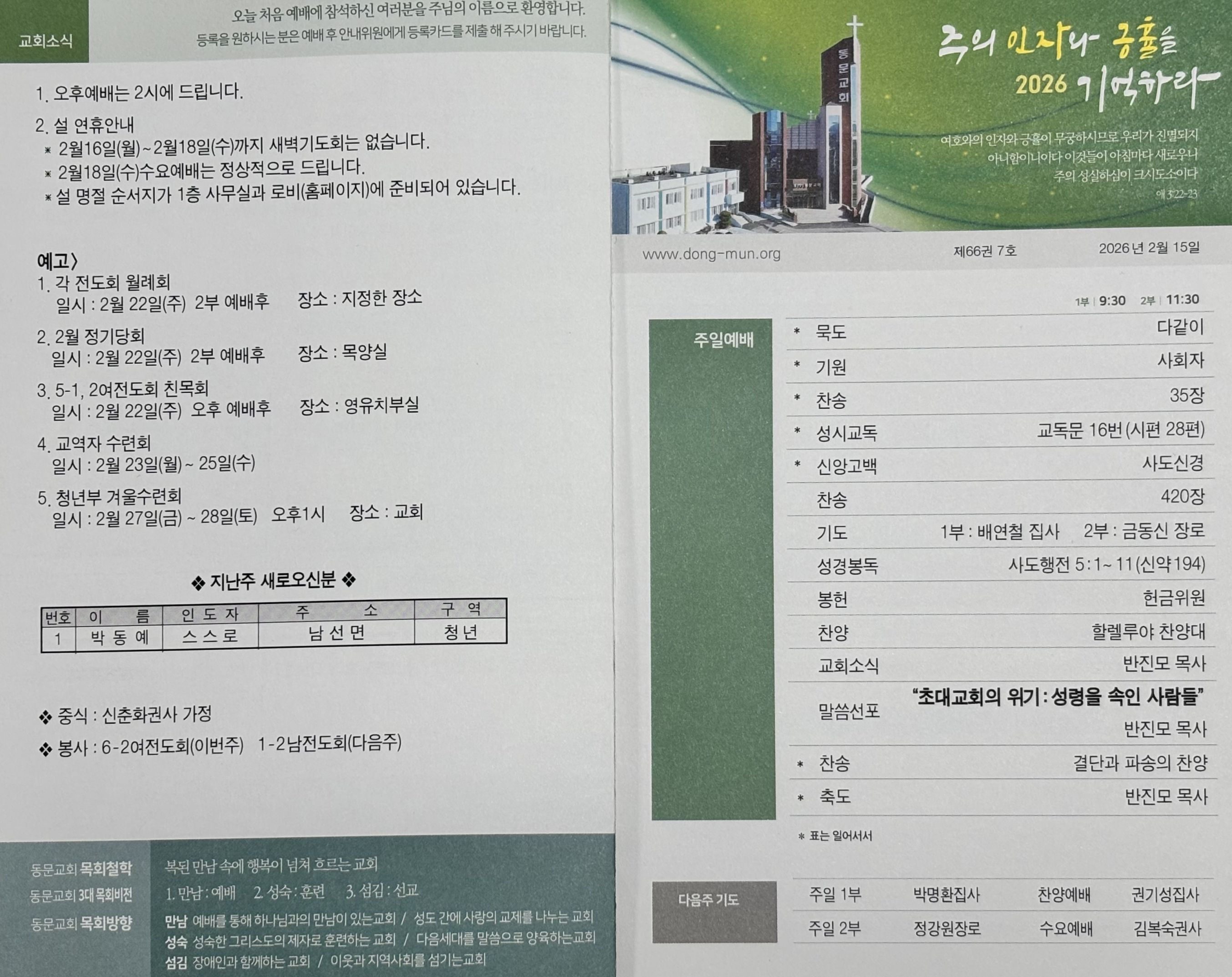 - 설명절 가정예배 순서지가 1층 사무실과 로비, 그리고 홈페이지에 준비되어 있습니다.