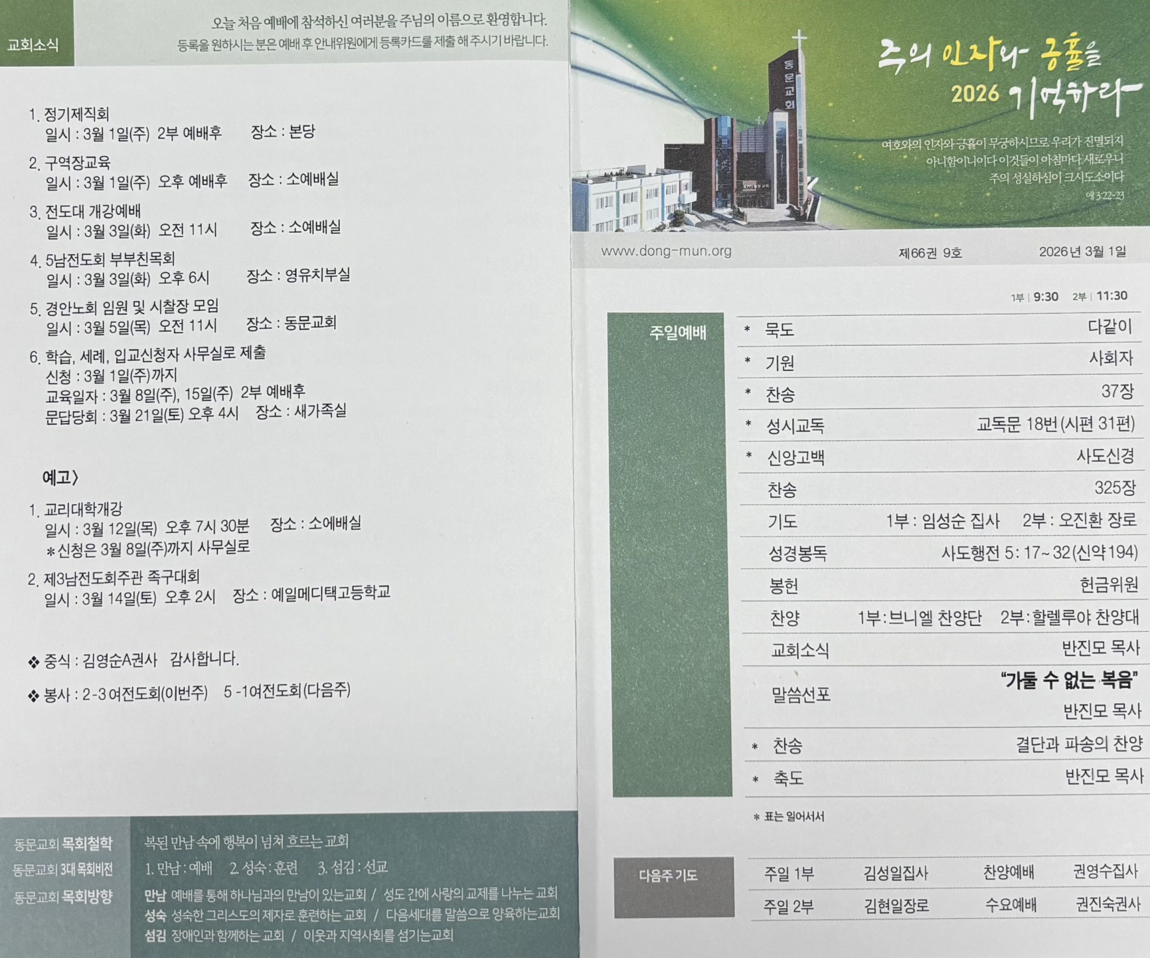 - 일시 : 3월 5일(목) 오전 11시 - 장소 : 동문교회