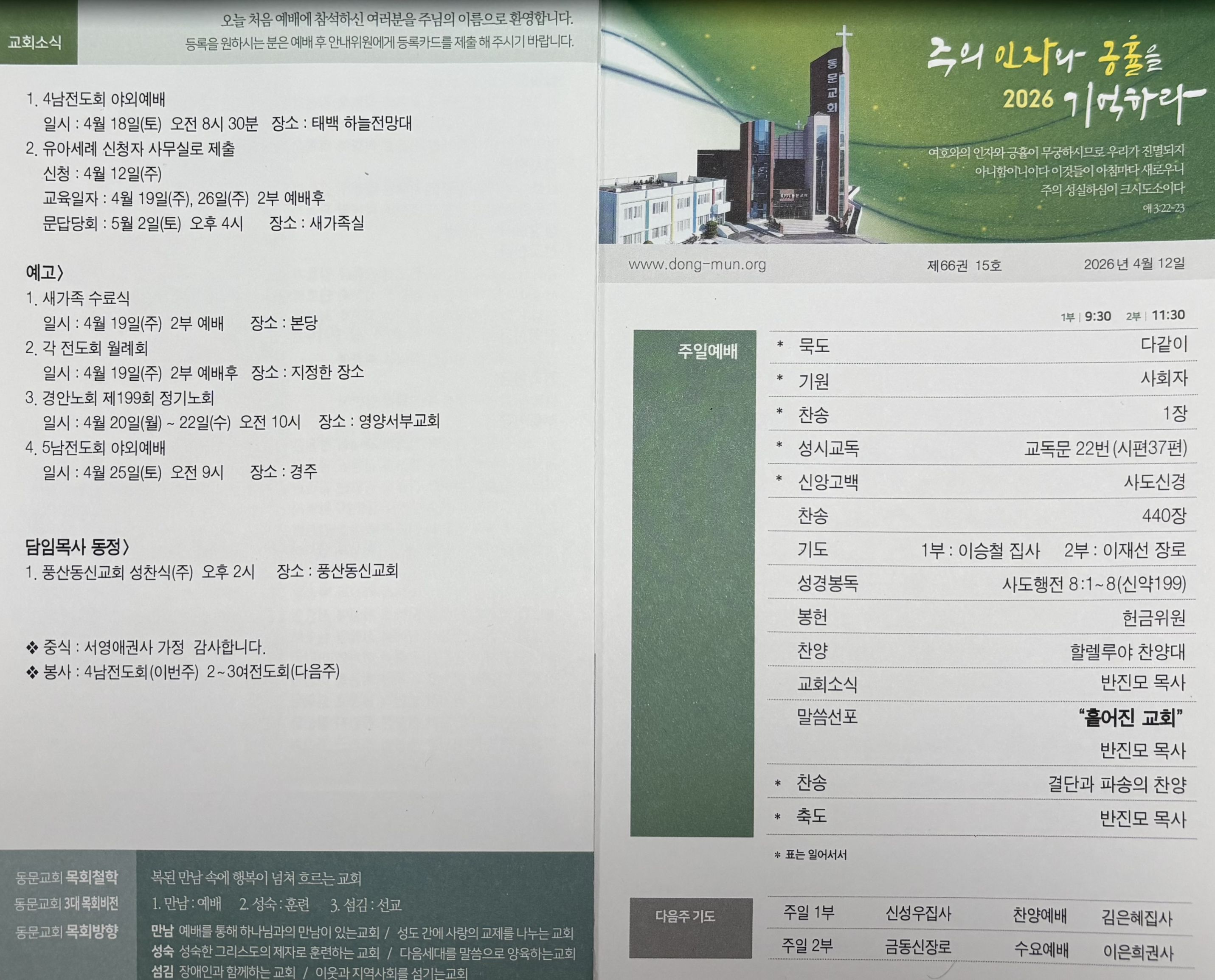 - 일시 : 4월 19일(주) 2부 예배 - 장소 : 본당