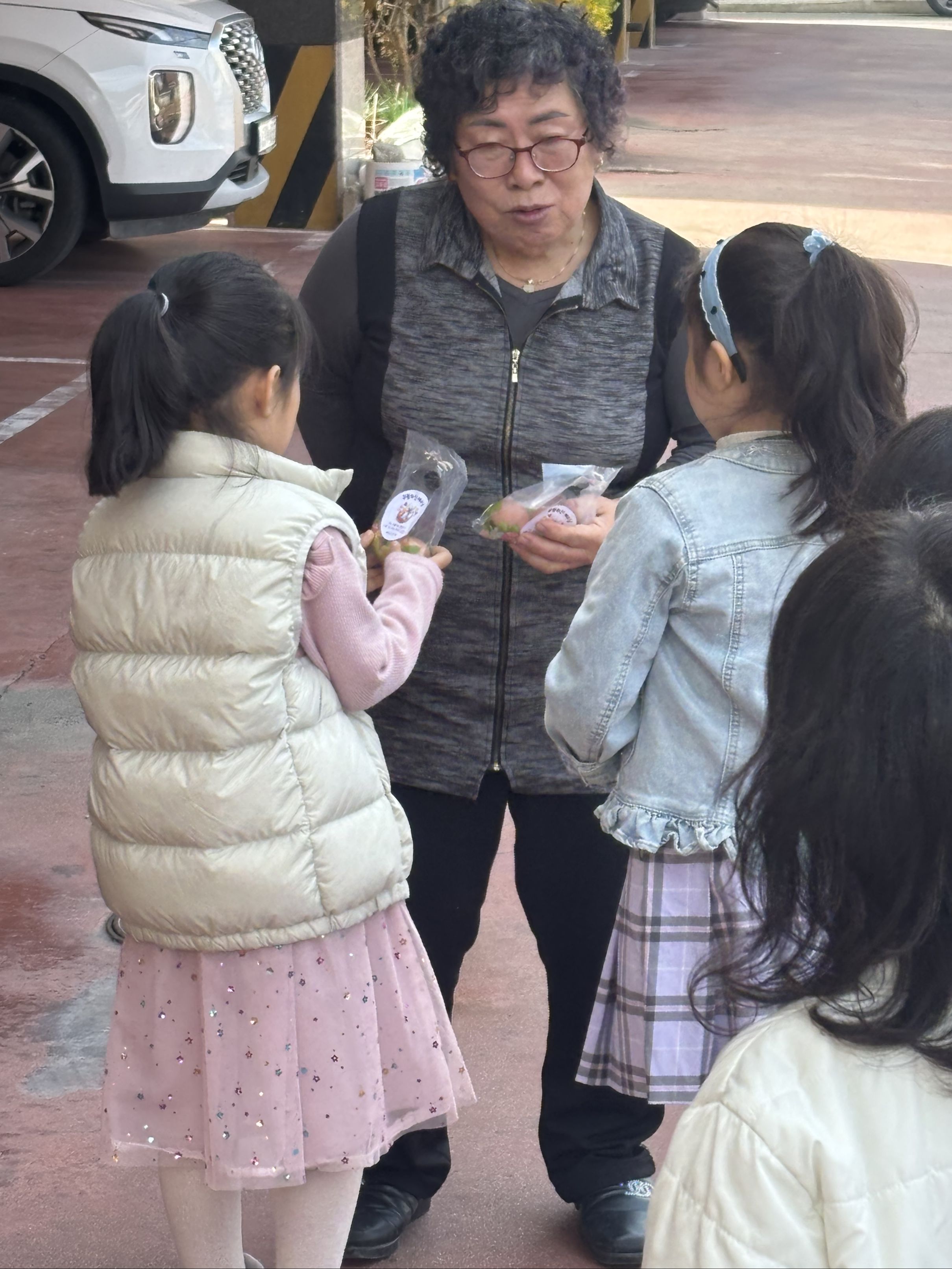 어린이부 친구들이 교회주변에 계란을 나누며