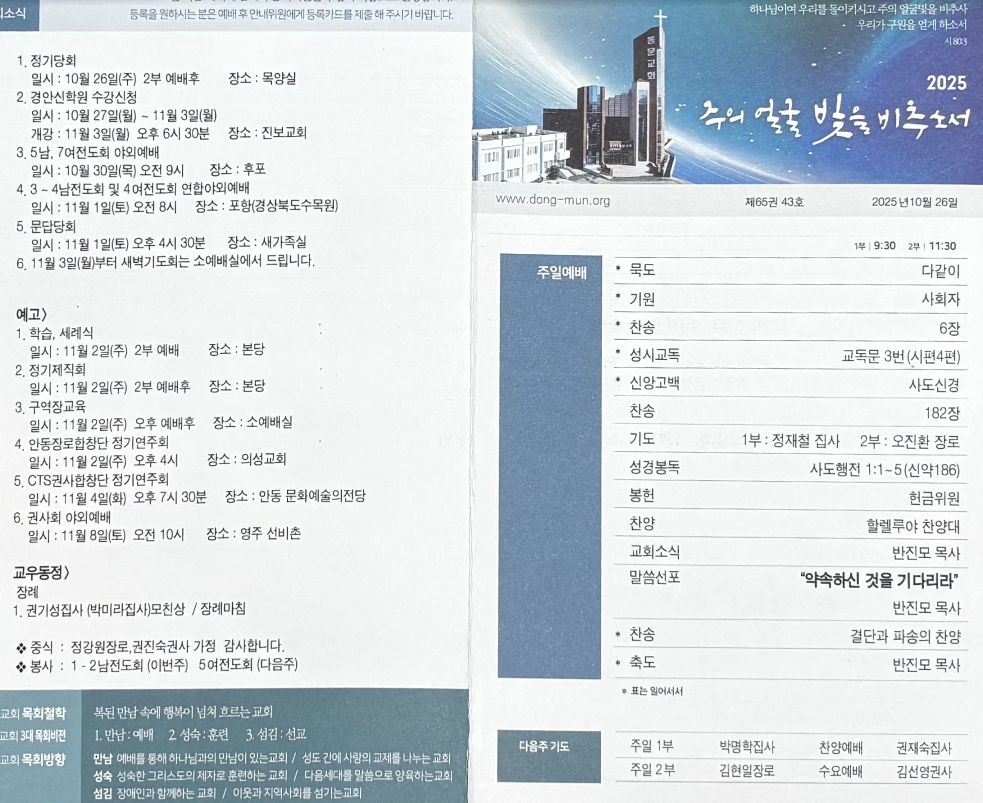 - 일시 : 10월 26일(주) 2부 예배후 - 장소 : 목양실