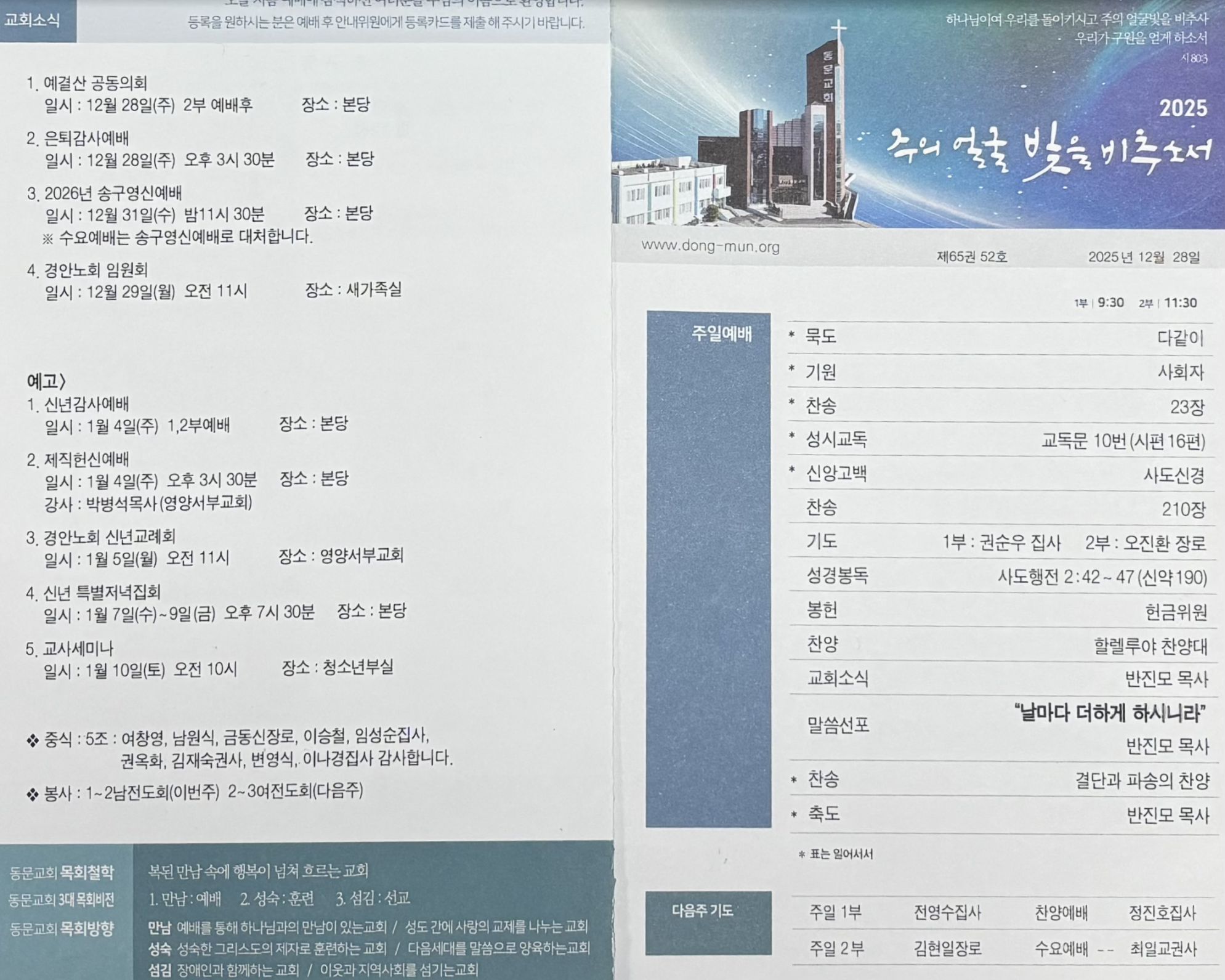※ 수요예배는 송구영신예배로 대신합니다.