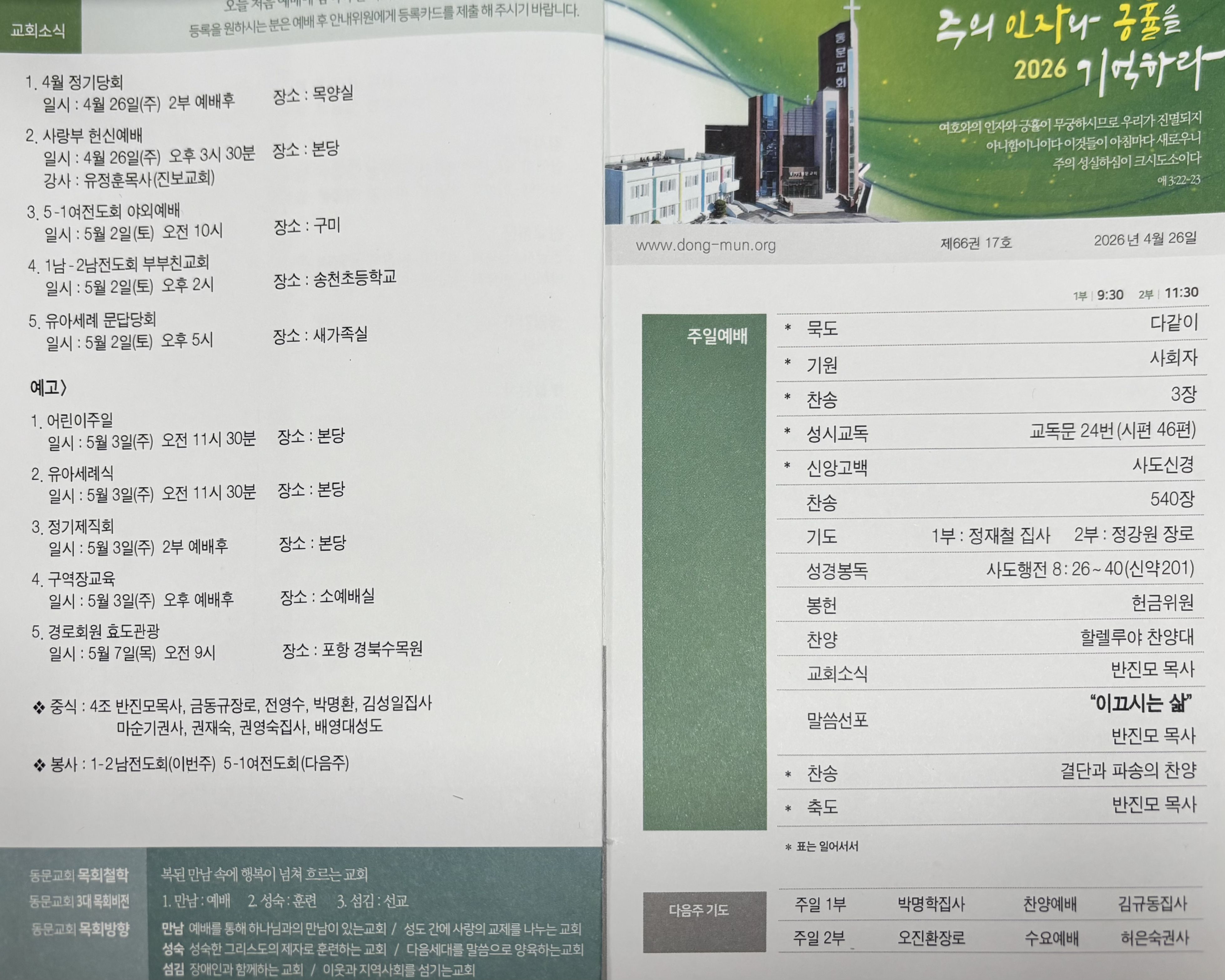 - 일시 : 4월 26일(주) 2부 예배후 - 장소 : 목양실